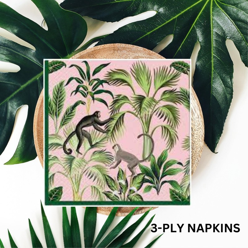 Keep Unique 20-ct 13x13 Animal Birds Paper Luncheon Decoupage Napkins, 3-Ply Servilletas Napkin for Art, Dinner and Party, Disposable Napkins Decor (Monkey)