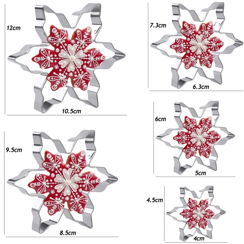 - 【CHRISTMAS SNOWFLAKE CUTTERS】There are 5 sizes.Our cookie cutters set are not only good for pressing dough, but also for cheese,jellies and more. Fun cookie cutters always give you a fun vibe while baking, and your family and your guests will enjoy delicate and delicious cookies.