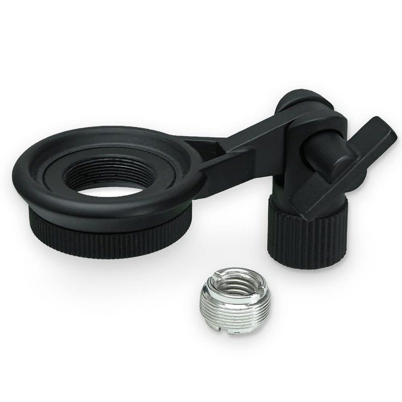 A 5/8 to 3/8 reduction thread is included, which allows the mount to be easily used with all microphone stands and microphone arms.