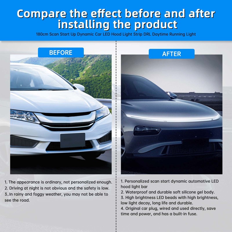 KEEPDSGN 70" For RAM 1500 2500 3500 Scan Start Up Dynamic LED Hood Light Strip Flexible