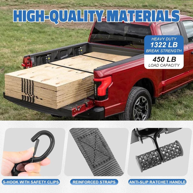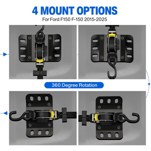 KEEPDSGN For Ford F-150 F150 2015-2025 2PCS/SET Retractable Tie Down Ratchet Straps 10FT