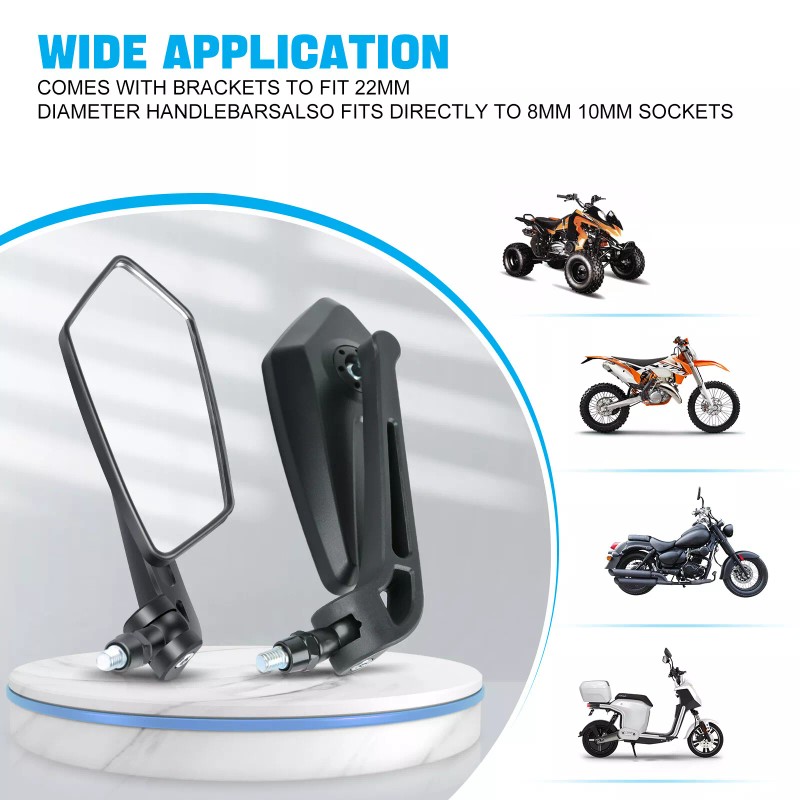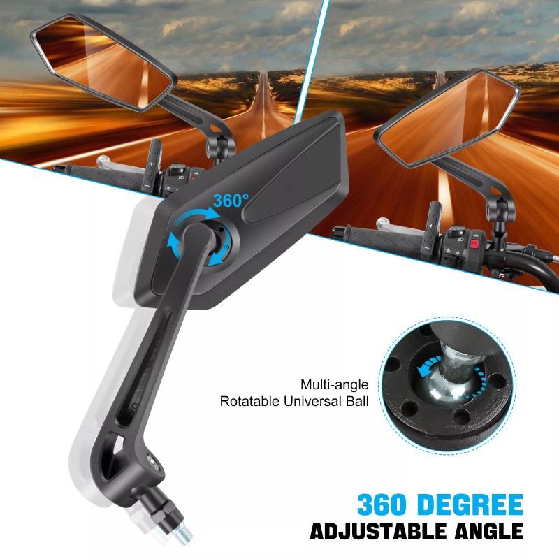 ADJUSTMENT FUNCTION - 360 Degree Swivel allows to be placed at ideal angle for your riding position! Freely adjust it left & right for the best viewing angle.