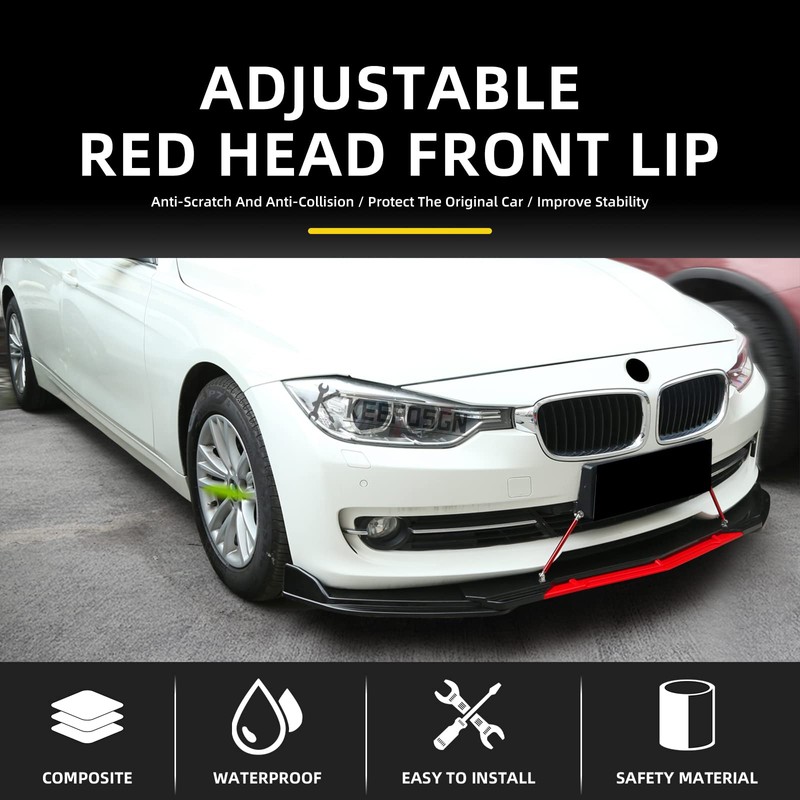 KEEPDSGN Front Splitter Lip, Front Bumper Lip, Universal Lip Protector Adjustable Body Kits Red Lip Splitter - Sharp Black,with Adjustable 8"-11" Support Rod(Red)