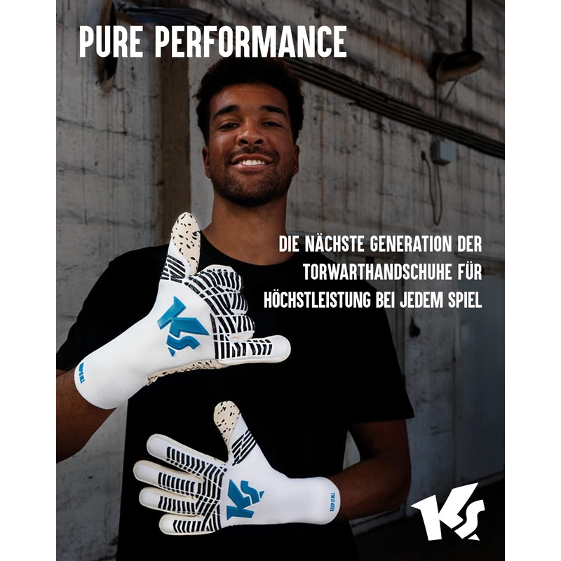 The KEEPERsport VARAN8 HERO NC is the flagship of the latest KEEPERsport Pure Performance collection and comes as a STRAPLESS version on the market. As a glove body, we use lightweight and breathable Knit material. This adapts perfectly to any wrist and promises you the necessary stability in any situation. Thanks to the negative cut (NC) you get a perfect fit and the best ball feeling when catching. The 4 mm Super Glue adhesive foam impresses with its extreme adhesive capacity and is additionally reinforced by the integrated adhesive dots. For this reason, countless of our professional goalkeepers trust this surface. To give you more adhesive foam surface, the latex wrap is used on the thumb. The anti-abrasion zone prevents the abrasion of the adhesive foam on the palm of the hand. Silicone elements are used on the back of the hand for better control when fisting. With the pull loop, getting into the glove is very simplified and saves you a lot of effort, even before it goes on the pitch.
