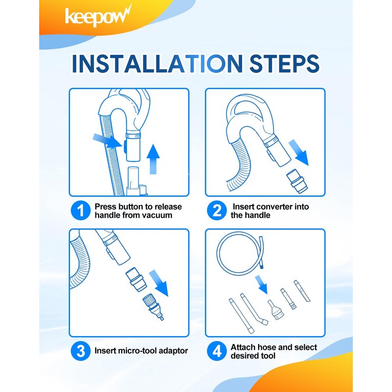 KEEPOW 8 Pieces Mini/Micro Vacuum Cleaner Attachment Tool Kit, 1-1/4" & 1-3/8" Attachments for Hard-to-Reach Areas