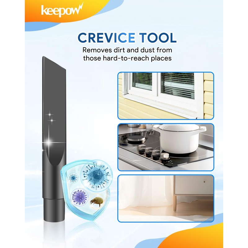 - COMPATIBILITY: The 8 pieces universal vacuum attachment kit is compatible with most shop vac and vacuum cleaner models. Includes crevice tool, dusting brush, upholstery nozzle, floor brush, extension wands, and more for thorough cleaning. Crevice tool is a game-changer for cleaning tight, hard-to-reach spaces