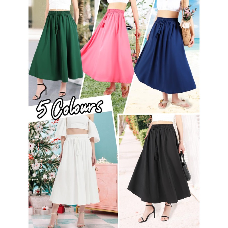 Kefiys Women's Summer Skirt with Pockets, Long Skirts with Elastic Band, Summ...