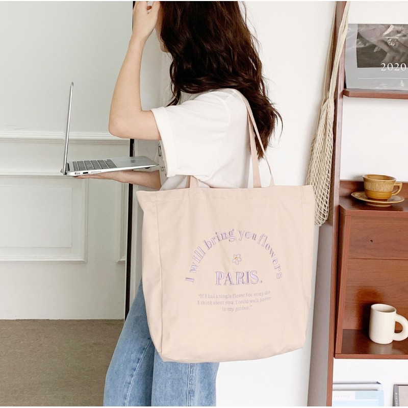 • Practical and Cute Tote Bag : This cotton tote bag have a big enough for all of your daily necessities. You can easily carry your laptop, cellphone, umbrella, wallet, card pack, power bank, perfume, makeups, paper handkerchief and so on.