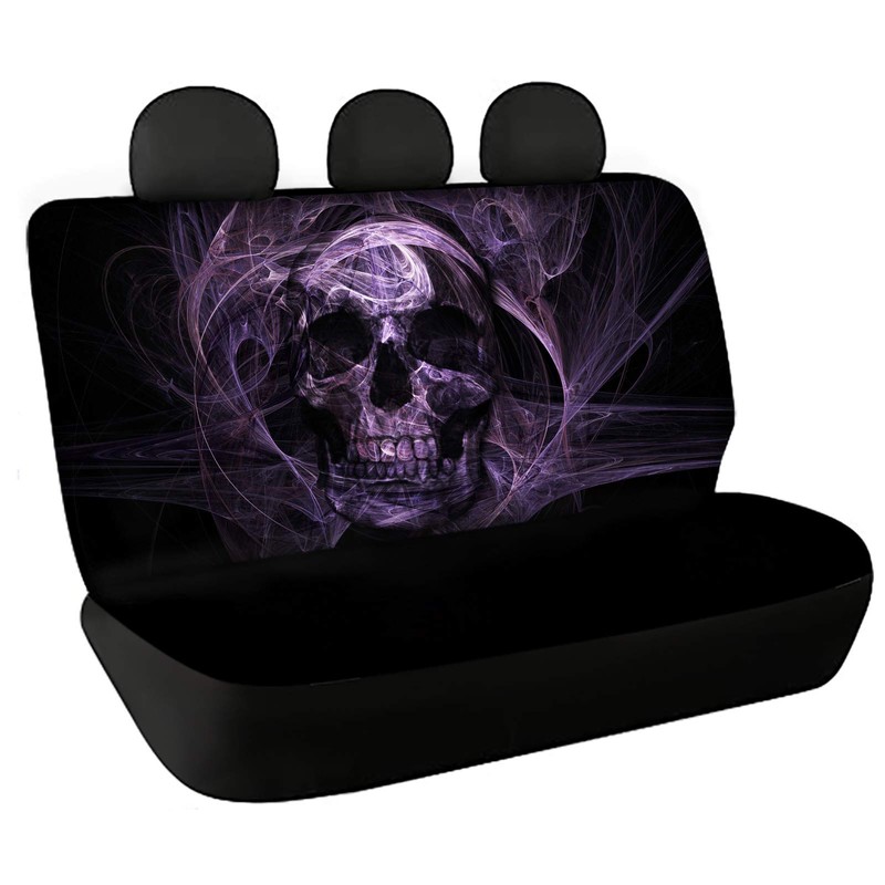 KEIAHUAN Purple Skull Car Seat Cover Set Full Set of 4 pcs for Front and Back Seat Cover Backrest Seat Protector Washable Polyester Fabric for Family Cars Interior