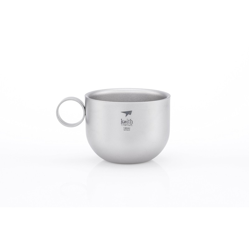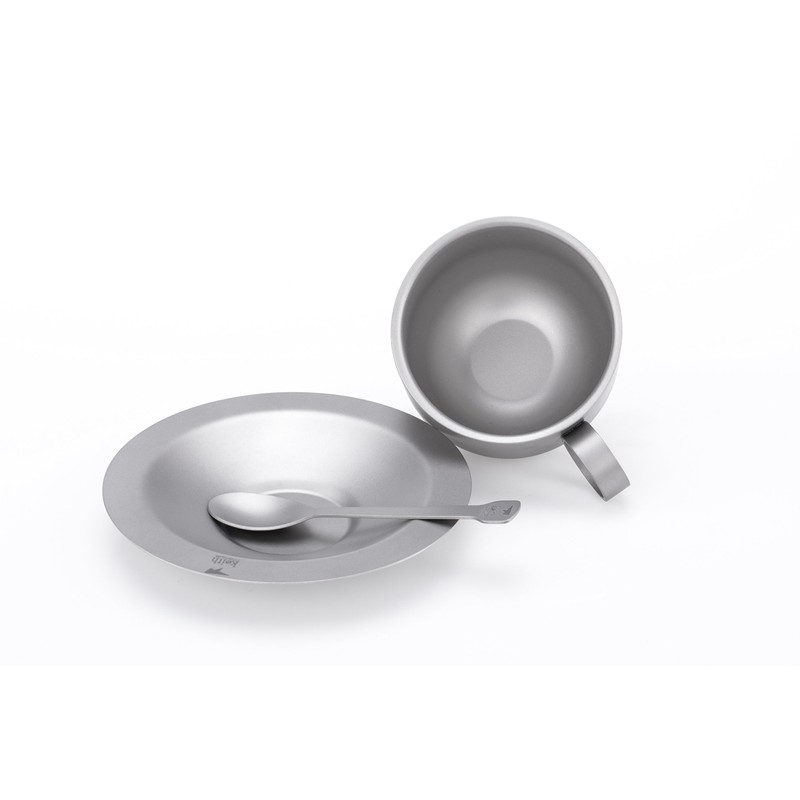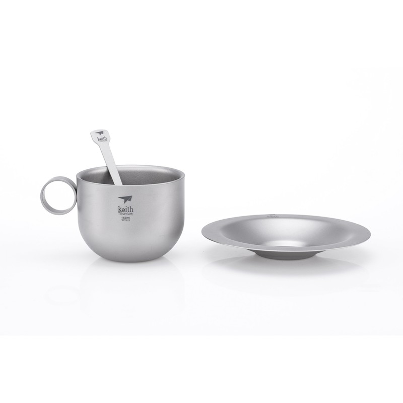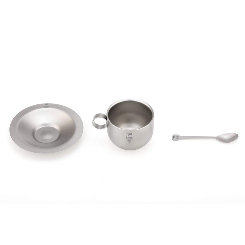 Keith Titanium Ti3601 Double-Wall Coffee Cup with Saucer and Spoon