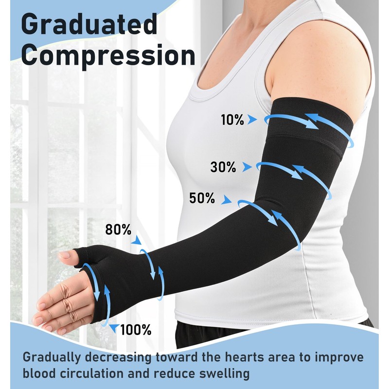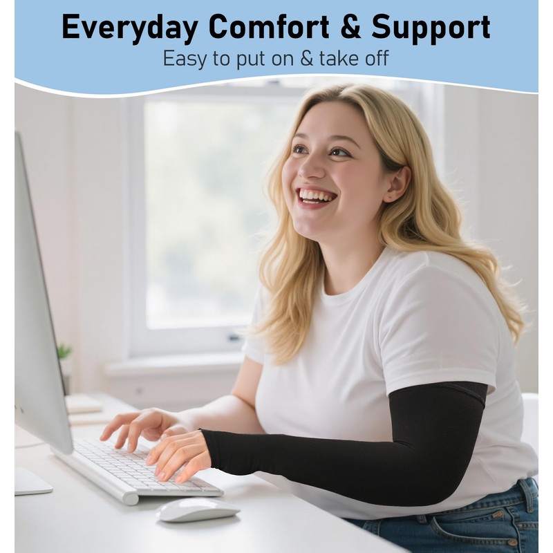 - PERFECT FOR ACTIVE LIFESTYLES: Versatile arm compression sleeve for work, sports, & daily life! The compression arm sleeve supports typing strain, gardening fatigue, driving discomfort, and post-op recovery. Trusted by nurses, teachers, construction workers, and athletes, it’s ideal for mouse hand syndrome, repetitive motion injuries, and lymphedema management. Left/right-hand compatible, this arm sleeve adapts to your routine—whether at home, the office, or the gym.