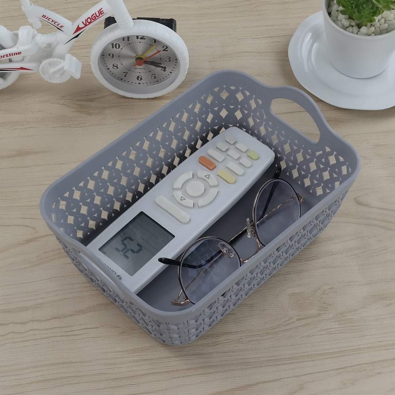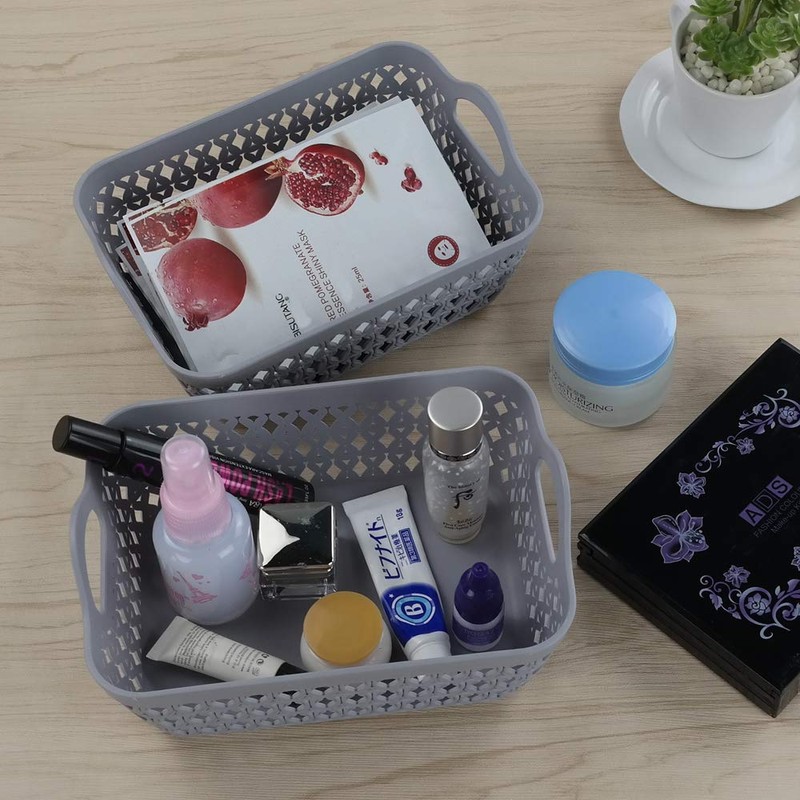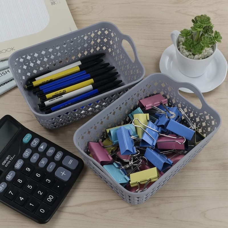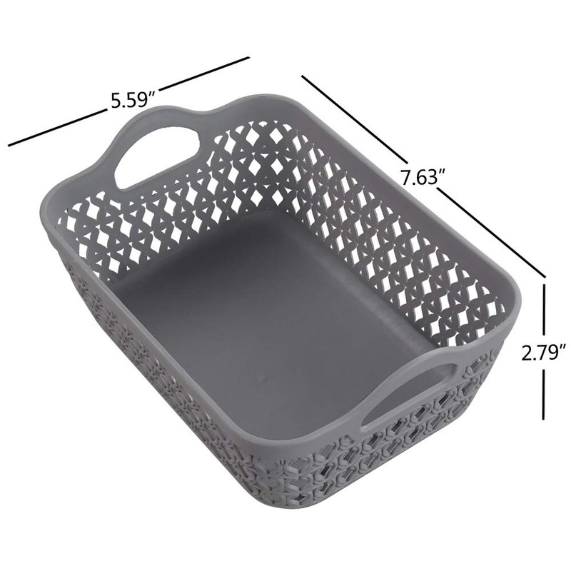 Kekow Mini Gray Plastic Storage Basket Trays, 12-Pack Small Shallow Plastic Baskets