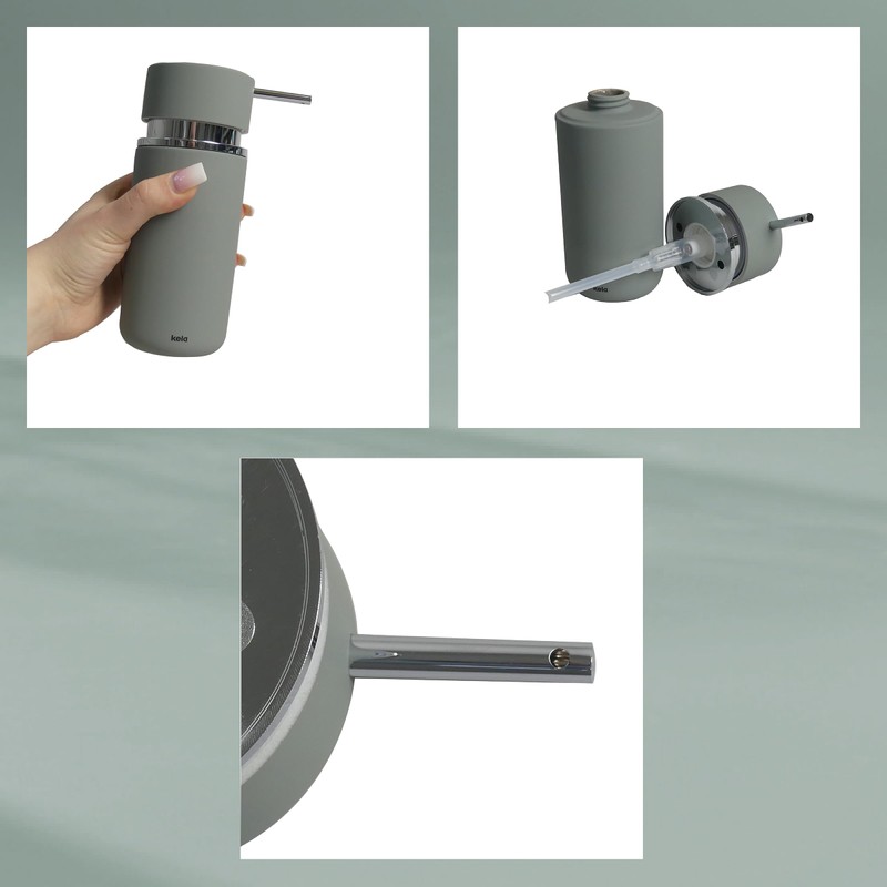 - Box contents: 1 kela soap dispenser Per, 20422, dimensions: diameter 6.5 cm, 16.5 cm, material: ceramic, colour: light grey