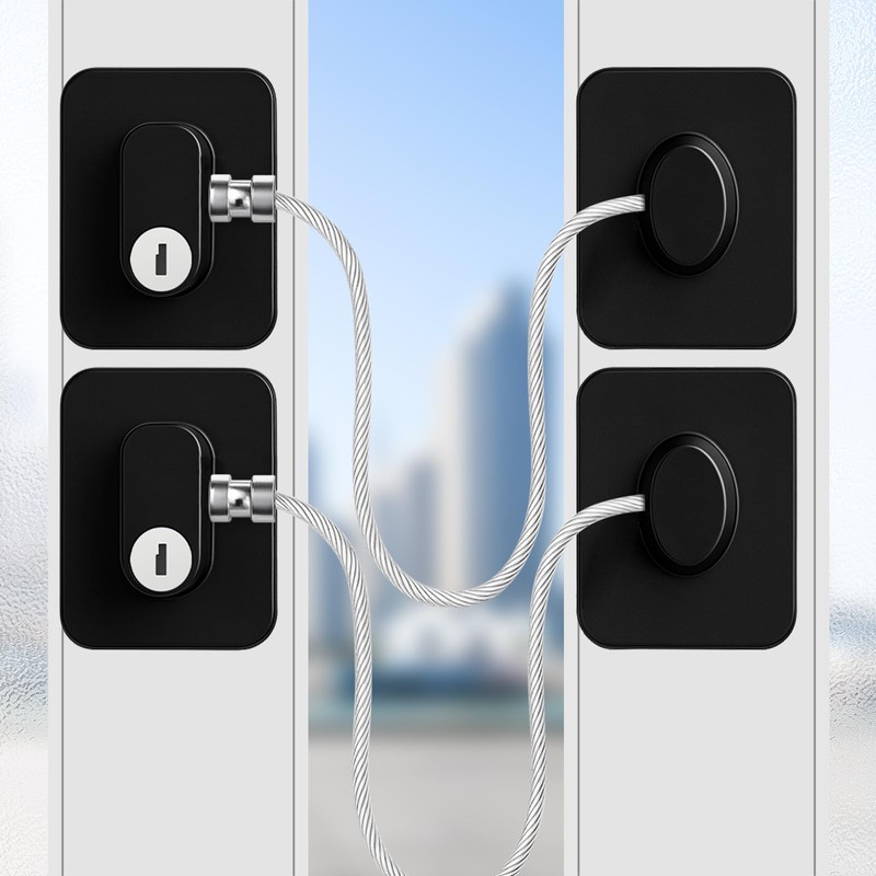 - Multifunctional use: universal child safety lock for 12 household areas: cabinets, drawers, toilets, windows, washing machines etc. Extendable ropes adapt to different sizes. Full child safety umbrella for 0-5 years. Includes replacement adhesive sets for parallel multi-area protection