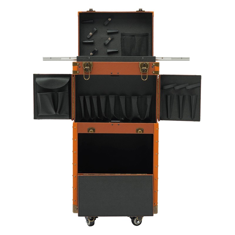 - 【Premium Materials】 This hairdressing case is made of high-quality PVC, wooden boards, and hardware, which is wear-resistant, and durable, The retractable rod length allows you to freely adjust the length of the rod.