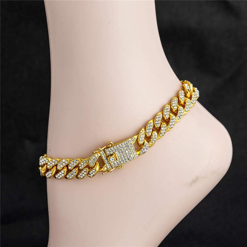 - DESIGN: Thick rhinestone filled Cuban link. Punk and Hip-hop style, stand you out in the crowd. The anklet is wide and a great decoration for your ankle.