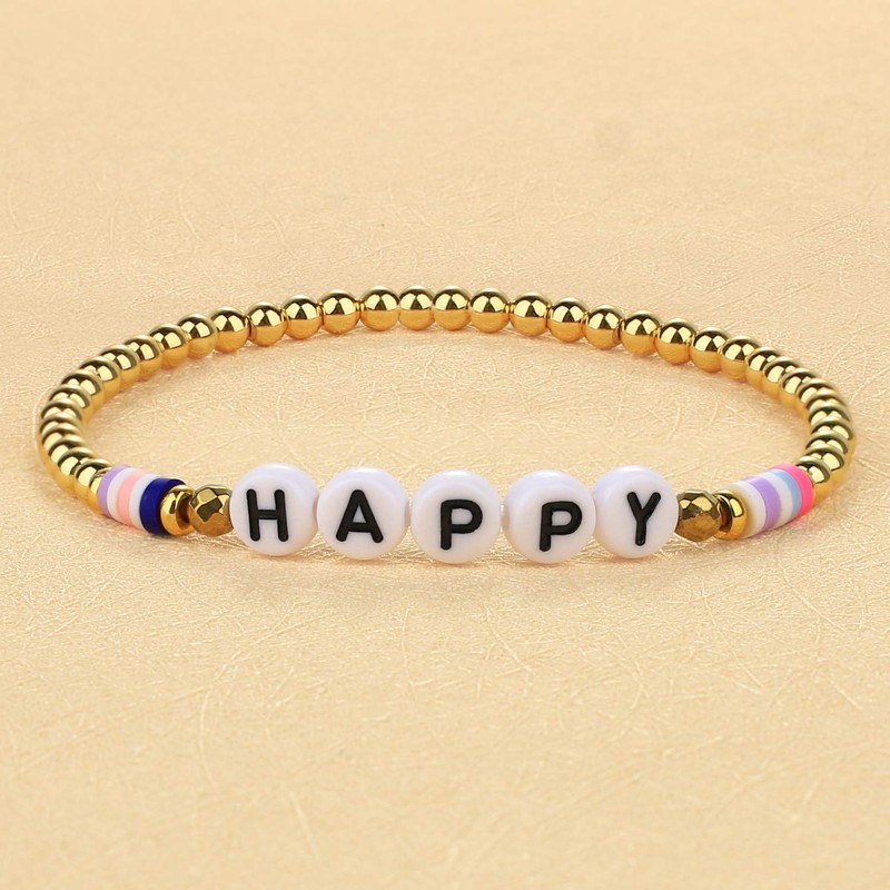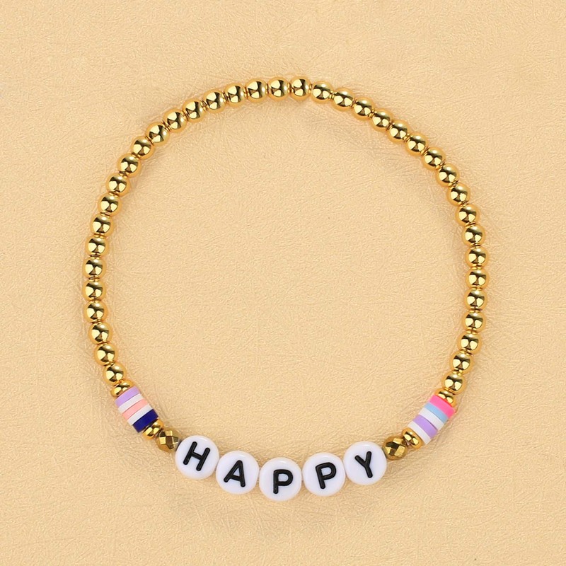 KELITCH Bunte Elastische Armbänder Gold Metall Perlen Armbänder Gemischte Alphabet Perlen Charm Armbänder (Happy 5D)
