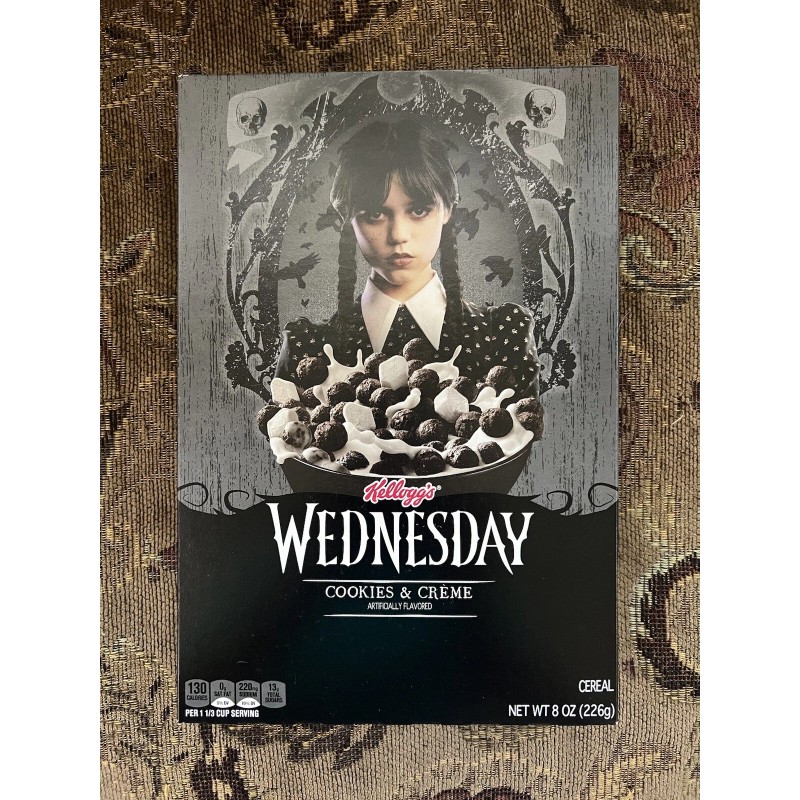 Lot of 4 boxes-Kellogg's Wednesday Addams Cereal Cookies and Creme 8oz (226g); Best Before Date: May 23, 2025