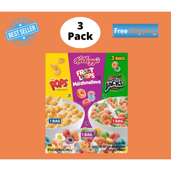 Kelloggs Breakfast Cereal Variety Pack, 3 ct. (No Ship To CA)