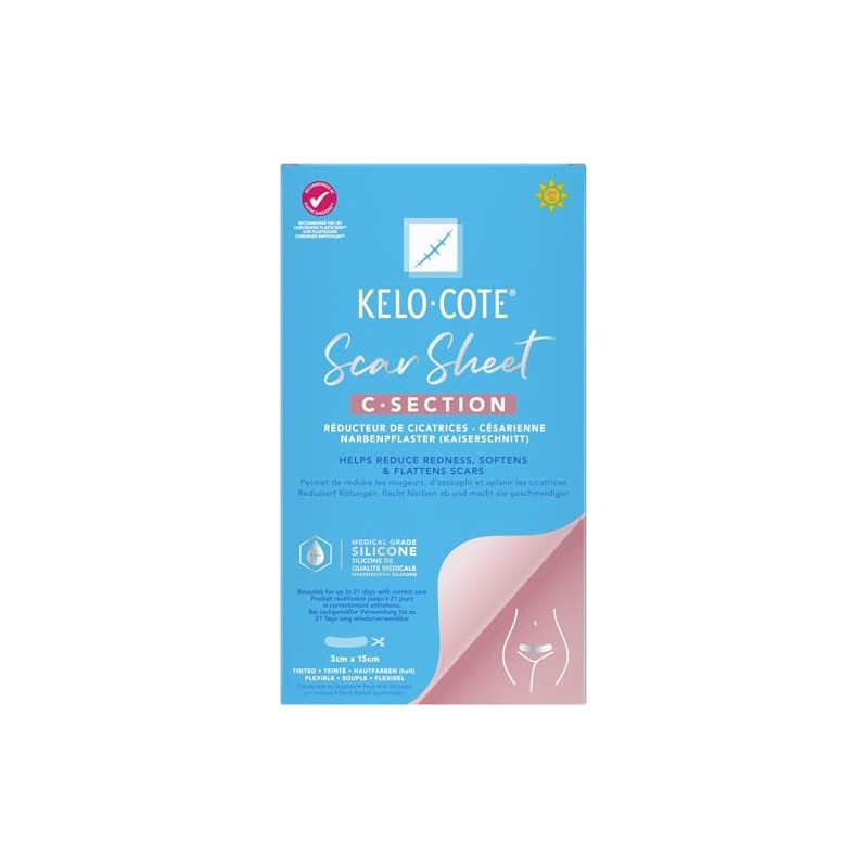 Product DescriptionSome Mums love their CS scars, some don't. Scars can have a significant impact on your everyday life and you may choose to improve the appearance of yours. Silicone sheets are clinically proven to help reduce the appearance of raised C-section scars. Silicone therapy is recommended by surgeons because it is proven to reduce the size, appearance and discomfort of raised scars. Kelo-Cote C-section Scar sheets should be used on clean and dry skin as soon as the wound has healed, stitches have been removed and any scabs have fallen off. Kelo-Cote C-section Scar sheets should not be used on open wounds. For good adhesion and durability, avoid applying over hair. If required, Kelo-Cote C-section Scar sheets can be cut to the correct size. Remove the protective film from the back of the sheet and apply the sheet to the scar. Gradually build up the length of application of Kelo-Cote® Scar Sheets for a minimum of 12 to a maximum of 23 hours a day. KELO-COTE® Scar Sheets should be cleaned daily with soap and lukewarm water. Allow to dry naturally and only reuse once it has completely dried. It takes at least 3-6 months for a scar to normalise Kelo-Cote C-section Scar sheets can be used as long as the scar is raised, red or causes complaints. KELO-COTE® is suitable for adults and children (3+ years).IngredientsMedical grade silicone, Textile layer ( polymide, elastane)