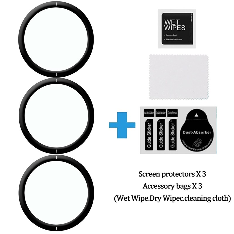 - PACKAGE INCLUDES 3 x screen protector and 3 x accessory bags in the package and each accessory bag contains 1 x wet cloth, 1 x dry cloth, 1 x cleaning cloth.