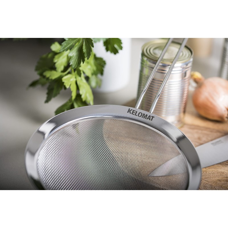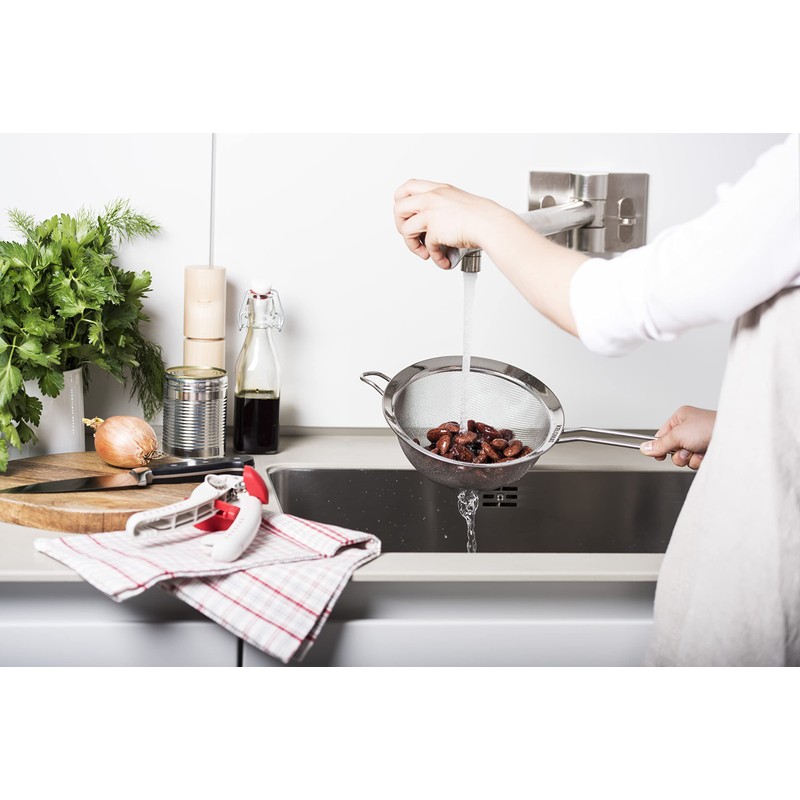 Versatile kitchen strainer for sifting and straining. If there is a kitchen aid that really should not be missing in any kitchen, then it is the kitchen strainer. With the double mesh net, you can strain a wide range of foods such as vegetables, pasta, soups after cooking or sieve dry foods with sugar or flour. The kitchen strainer is indestructible and easy to handle.