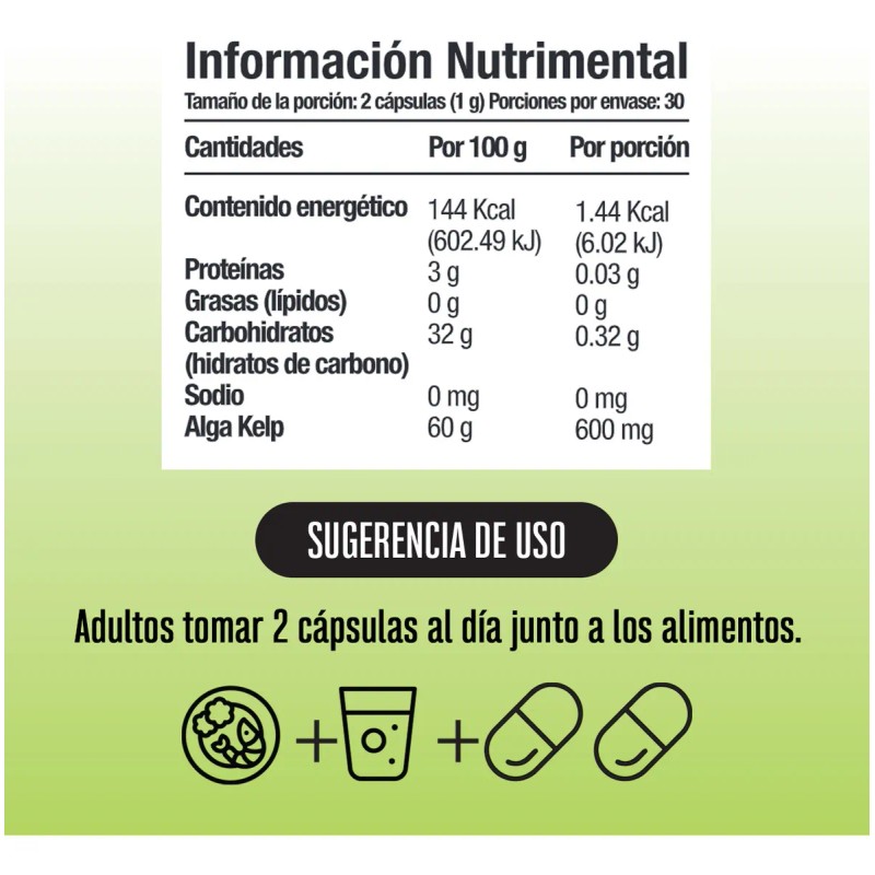 Descubre el poder del océano en cada cápsula. Con Kelp Algas Marinas, te embarcas en un viaje hacia un bienestar integral, aprovechando los tesoros que el mar tiene para ofrecer. Estas cápsulas no solo son una fuente rica en minerales y nutrientes esenciales, sino que también se convierten en tu compañero ideal para mantener el equilibrio de tu salud metabólica y tu bienestar general.