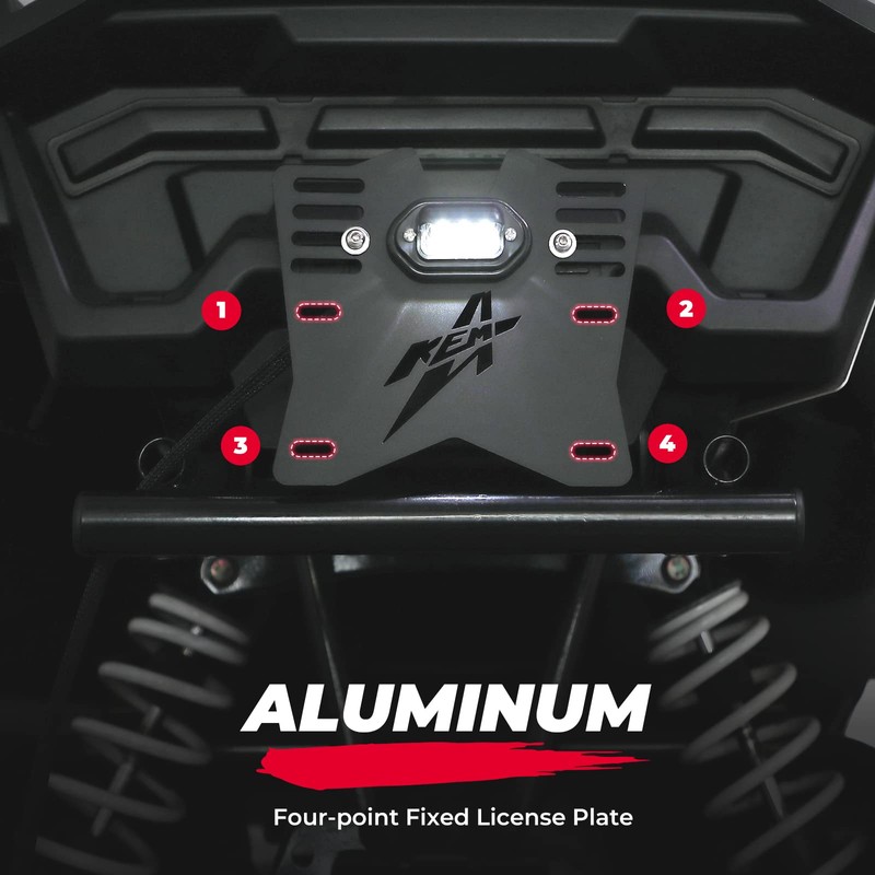 - Universal Fitment:Kemimoto LED license plate holder is widely compatible. It is 7.2in x 6.9in, making it suitable for UTV, ATV, SXS, Trailer, Truck, RV, Boat, Golf Cart, Snowmobile, etc. The UTV license plate holder with light is also compatible with Polaris RZR, Ranger, General, Sportsman, Can-Am Maverick X3, Defender, Commander, Talon, Kawasaki Mule, Teryx, Kubota, etc