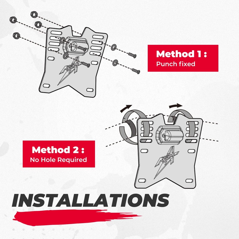 - Two Installation Methods: The UTV license plate frame with light offers two installation options. You can either drill holes to securely mount it on the vehicle body panel, or choose a no-drill method by using pipe clamps to attach it directly to round tubes with a diameter of 1.25-2 inches. The installation is very easy and convenient