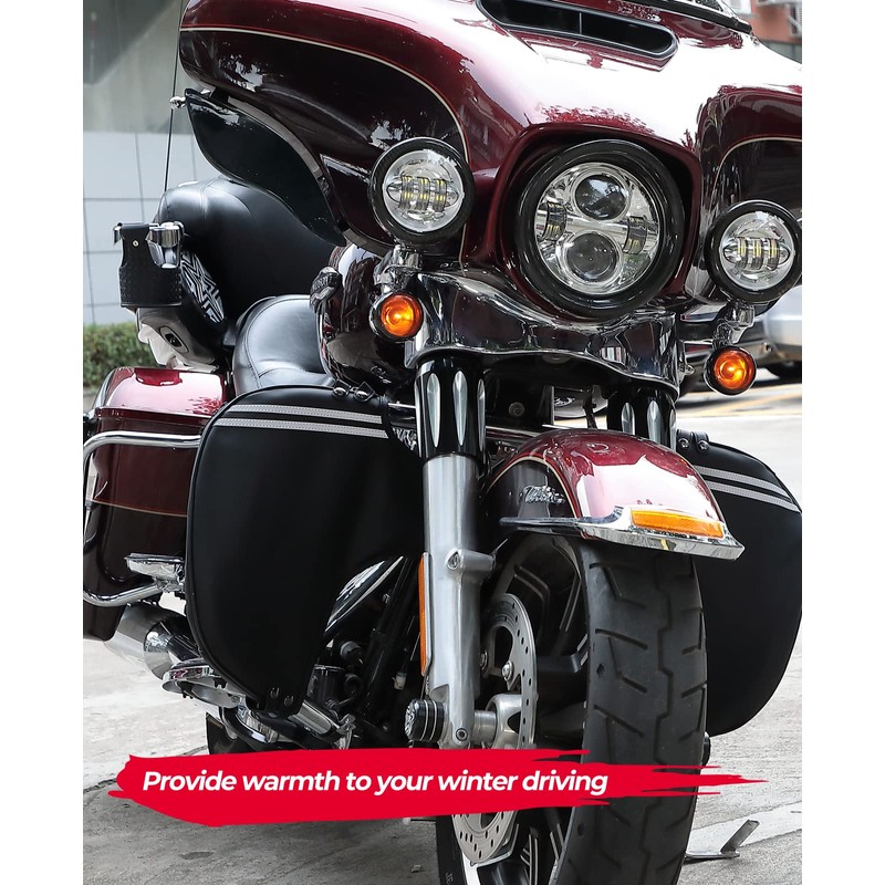 - 【PROTECT YOUR SHINS & KEEP WARM】These engine guard bags will keep most the little pebbles that pop up on the freeway from stinging your shins. In cold days, they will block the freezing air flow when you are driving, and vent engine heat to your legs.
