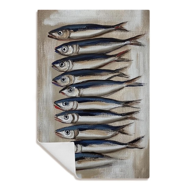 Kemingni Fish Kitchen Towels, Coastal Beach Kitchen Towels, Sardine Decor Dish Towels for Kitchen, Beach Hand Towels for Bathroom, Fish Bathroom Decor, Beach Kitchen Decor, 16x24 Inch