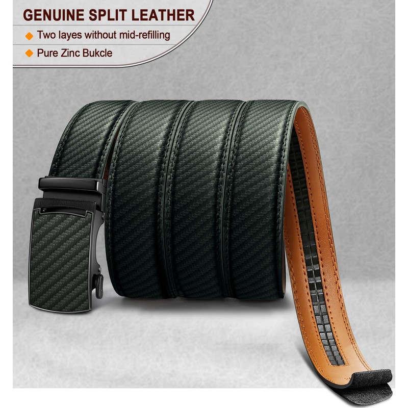 KEMISANT Belt Men, Sliding Ratchet Belt Genuine Leather For Gift Mens Dress Pants Oxfords,Size Adjustable(Dark Green,42"-48" Waist Adjustable)