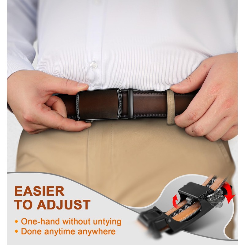 - Comfortable adjustment: with our unique ratchet belt design, you can easily adjust the tightness with one hand, thanks to the adjustable valve on the bottom of the buckle. No more hassle opening the belt, just adjust on the go and flaunt your style with confidence and ease