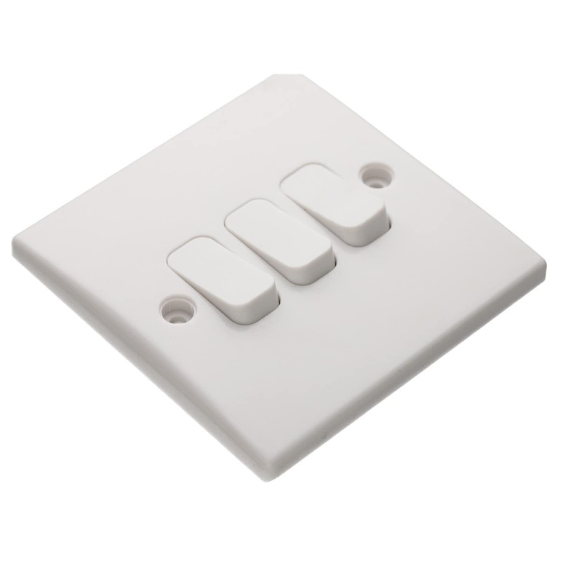 - kenable 3 Gang 2 Way 10A Triple Light Switch Rounded Faceplate White [3 Gang (2 Way) Light Switch]