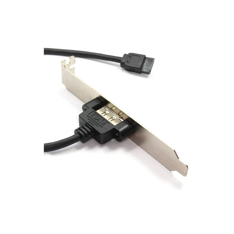 1 Port eSATA Backplate Adapter - plug the sata cable onto your motherboard and it gives an external eSATA port. Easy way to get a eSATA port without the need for an expensive PCI card Connectors: 1 shielded eSATA Female connectors to 1 x internal S-ATA Male connector Length: 25cm Needs a spare SATA port available on your motherboard.