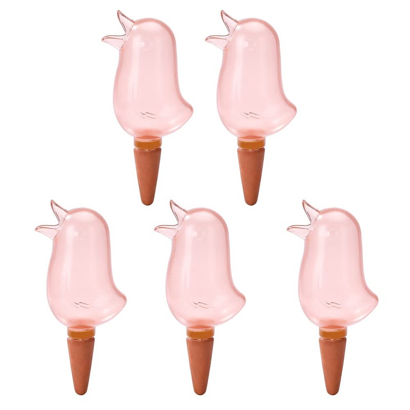 KENANLAN 5 Packs Self Watering Spike,Clear Bird Shape Self Watering Globes,Automatic Irrigation Spikes, Plant Watering Devices for Potted & Hanging Plants (Desert red)