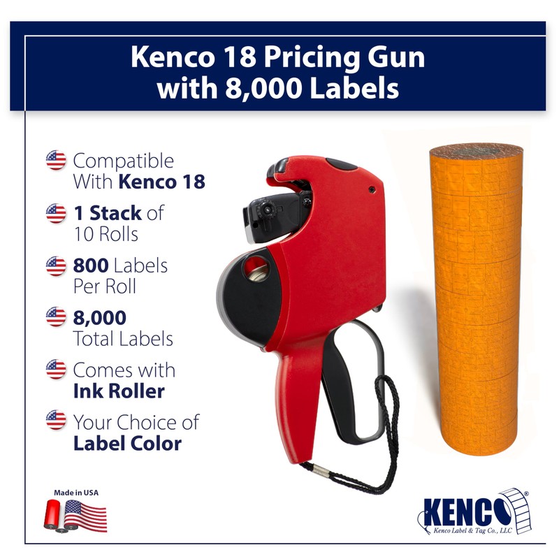 - Kenco 18 Price Gun Kit - Each Kit includes 1 Label Gun. Choose variation with the total label quantity you want. Pick your colors and text through the customize now button!
