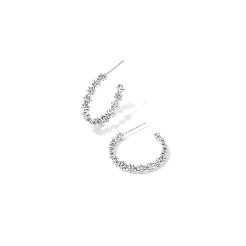 Kendra Scott Womens Nydia Hoop Earrings Silver White Crystal One Size