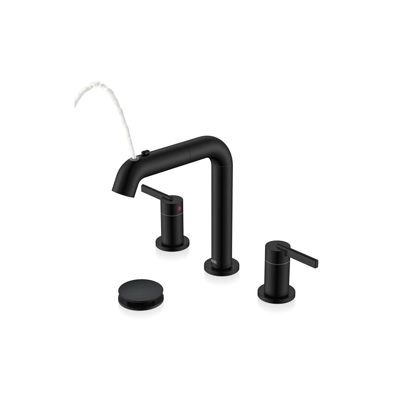 KENES Matte Black Pull Out Bathroom Faucet, 8 Inch 2 Handle Widespread Bathro...