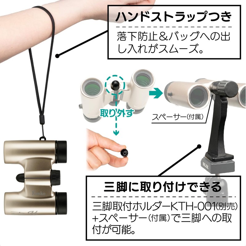 Kenko 320051 Ultra View H 10x21DH FMC Daha Prism Binoculars 10x 21 Caliber Compact Lightweight 190g Full Multi-Coated for Live Concert Theater (Gold)