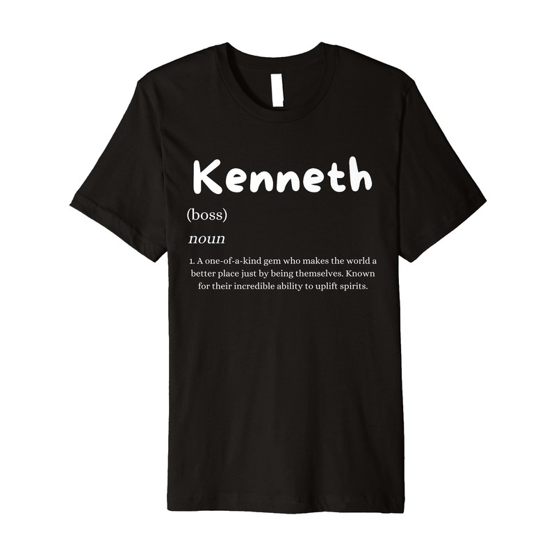 - Christmas, Birthday, or back to school costume for boys named Kenneth. This makes the perfect custom first name meaning print design definition for kids and adults named Kenneth. This Kenneth item is meant to uplift, and spread positivity when it is worn.