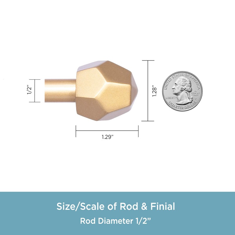 Kenney KN55902 River Geometric End Petite Café Decorative Window Curtain Rod, 28-48" Adjustable Length, Burnished Brass Finish, 1/2" Diameter Steel Tube