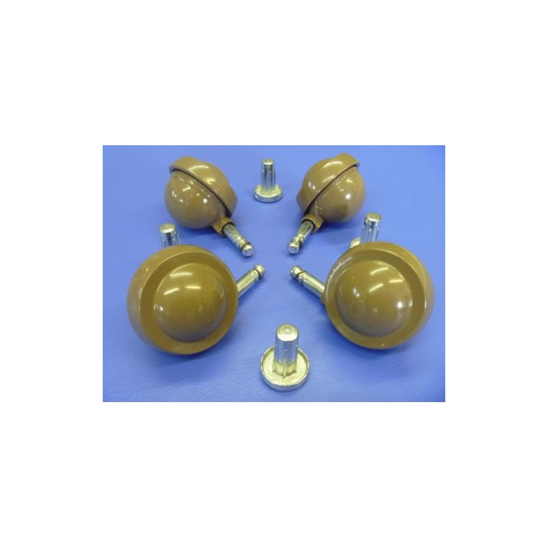 A top quality castor as used by high end manufacturers such as Parker Knoll, Ercol, G-Plan etc. These shepherd castors – M8 thread have been manufactured by Kenrick since 1948. They are a very common castor used within the upholstery trade to give a traditional look. These Shepherd castors have a M8 thread fitting and the metal ball castor gives a 300KG load per set or 4. (manufactured in the UK). Traditional brown/beige colour they come complete with sockets. To fit simply prise out your old castor and socket and tap home the new socket, then push the castor firmly home. These are the traditional metal ball castors also known as Browns 50mm diameter ball Supplied with socket Height when fitted 56mm Socket fixing castors simply fit into the existing hole in the furniture.