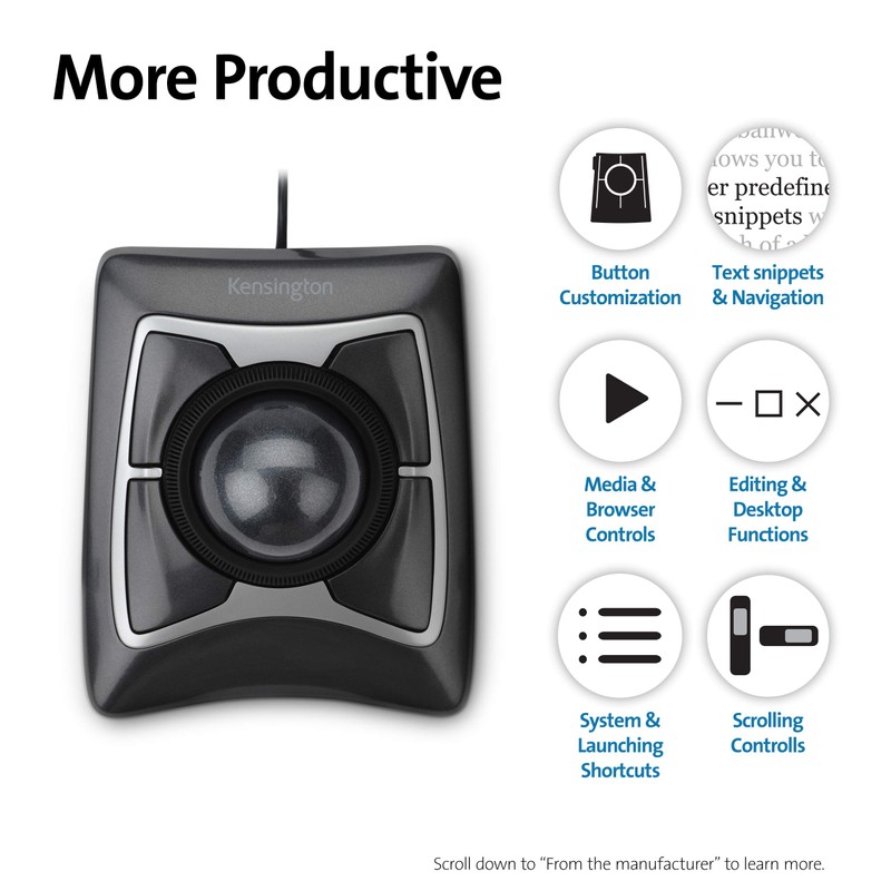 • Large 55mm ball design and Diamond Eye optical tracking for precise cursor control; Award-winning scroll ring lets you scan up and down pages with ease