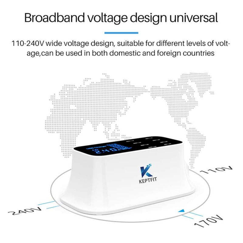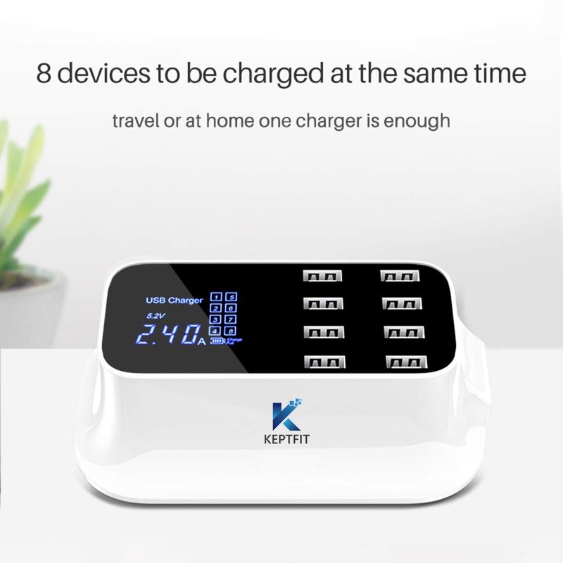 Keptfit, Cargador USB Múltiple, con 8 Puertos, Blanco