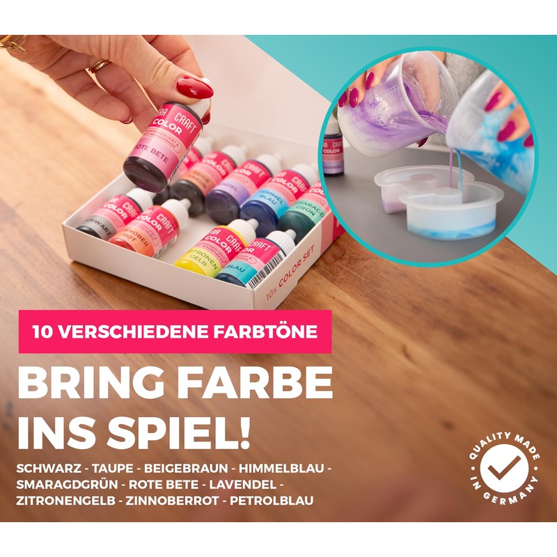 • Mixable: the different liquid colour pigments can be mixed with each other. This allows you to create many different colour effects. There are no limits to your creativity #be creative!