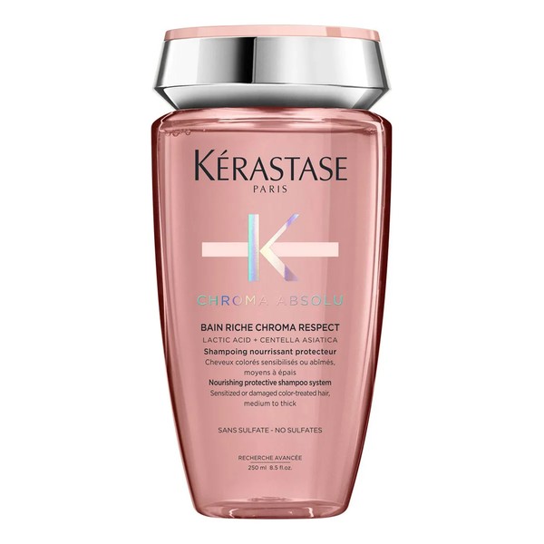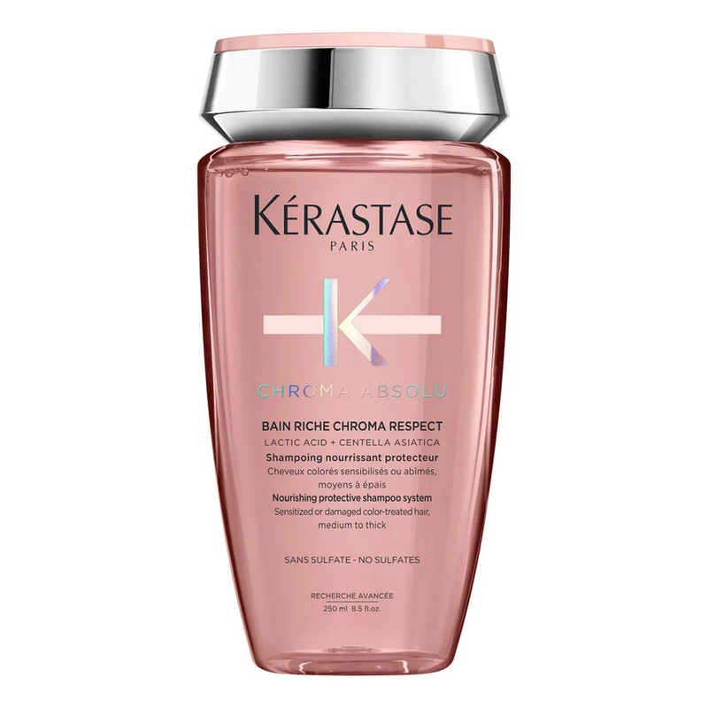Con Kérastase Shampoo Bain Riche Chroma Respect, tu cabello teñido no solo lucirá un color vibrante y duradero, sino que también estará nutrido, suave y protegido.
