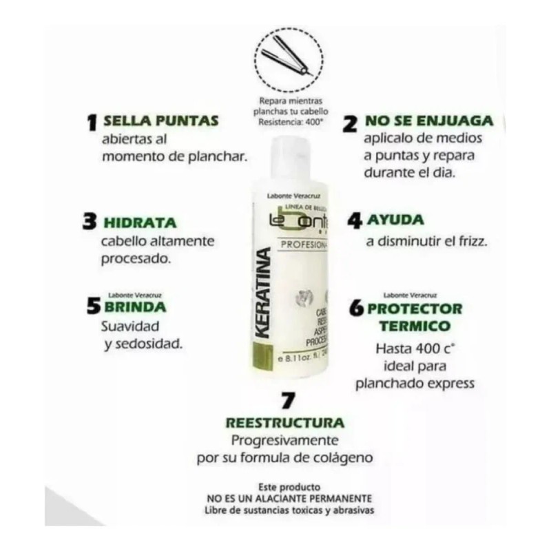 La fórmula de la Keratina Alisante Labonté está enriquecida con Keratina hidrolizada, la proteína esencial que compone la estructura de nuestro cabello. Al aplicarla, la keratina penetra en las cutículas capilares, ayudando a: