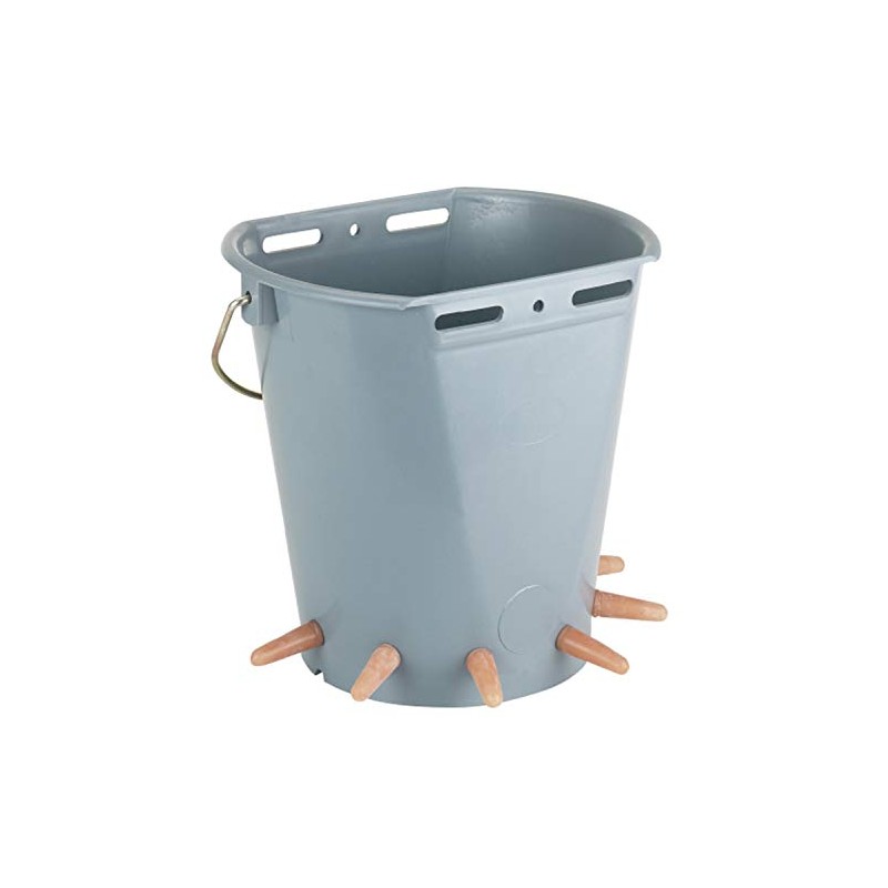 Plastic lamb bucket with 6 suction points for feeding up to 6 lambs. Lid not included.