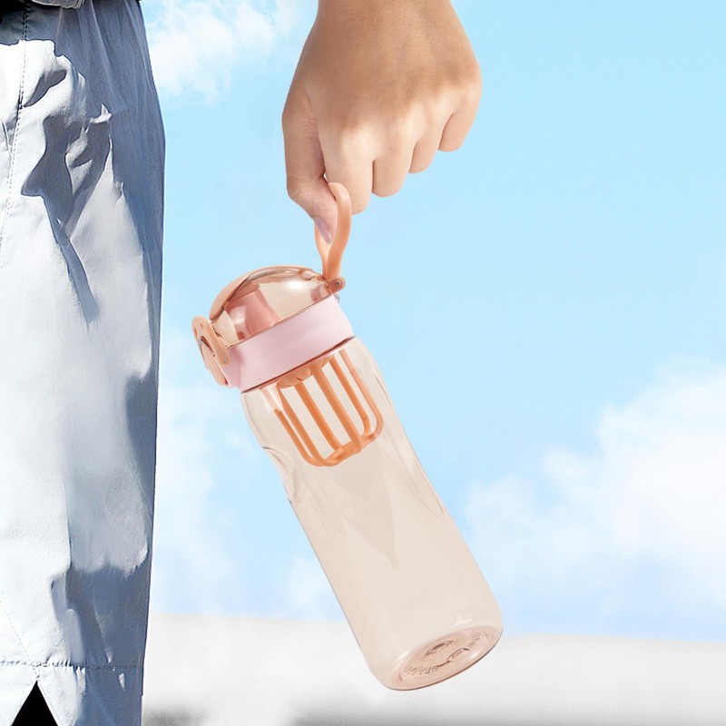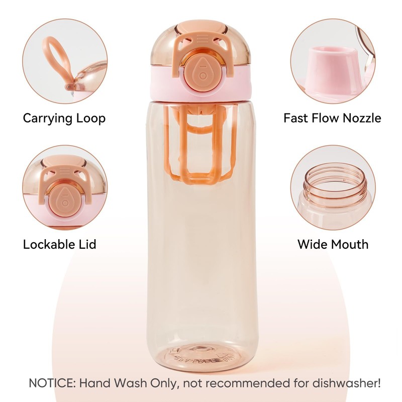 Kerilyn 28oz Water Bottle with Fruit Infuser Strainer, BPA-Free Sports Water Bottle, One-Click Clear Water Bottle with Safety Lock for Office, Gym, Outdoors, Pink